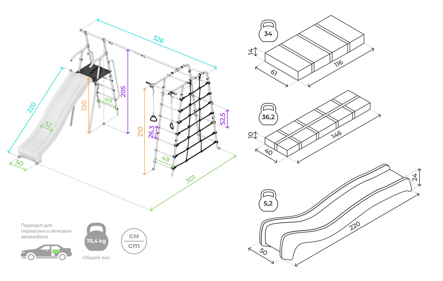 Металлический каркас (турник, рукоход, лестница) — до 100 кг